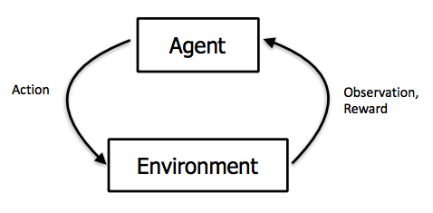 As shown in the figure below, in reinforcement learning, an agent performs an action in an environment, thereby changes the state of the enviroment and then receives a reward (or punishment) for this action. In this manner, the agent ‘learns’ which actions give better rewards compared to others.